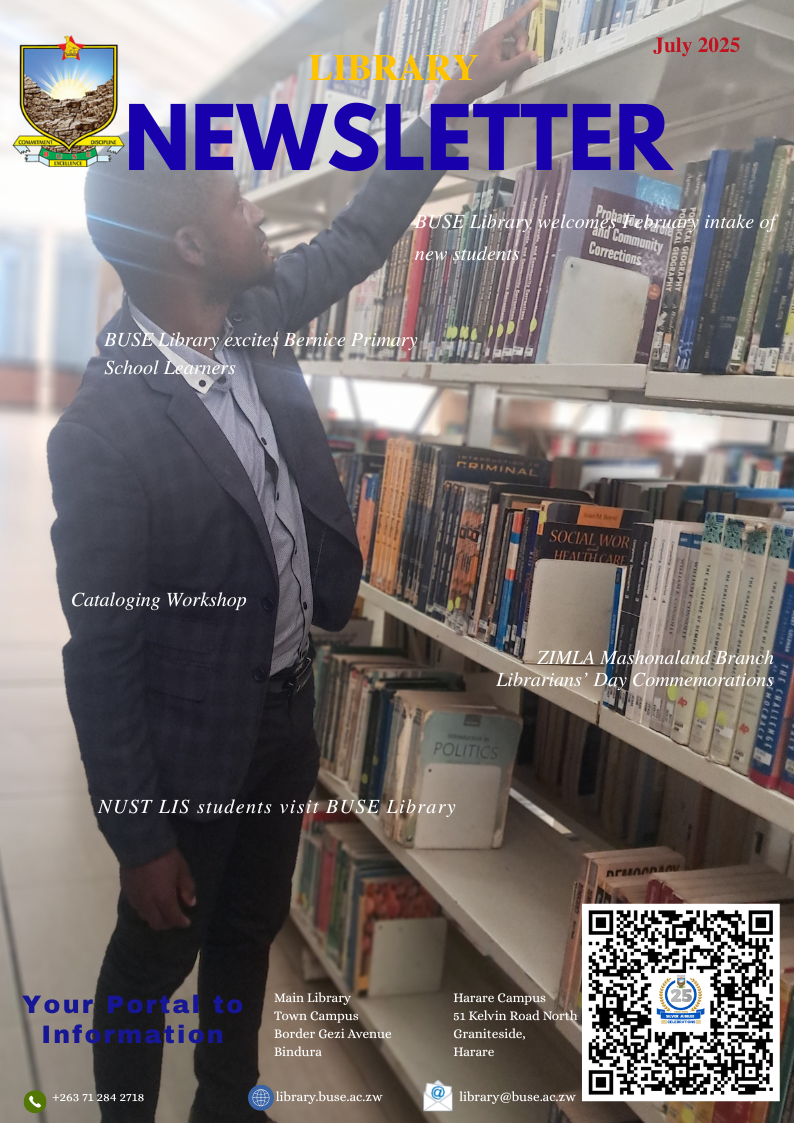 Welcome to the Bindura University of Science Education (BUSE) Library. As the Librarian of BUSE, I superintend a team of dedicated staff who are readily available to serve you. The Library has a print collection accessible at the Town Campus but also provides access to millions of electronic resources available through the Institutional Repository as well as electronic books and journals databases we subscribe to. The Library’s physical spaces are available to patrons for convenient study and relaxation.